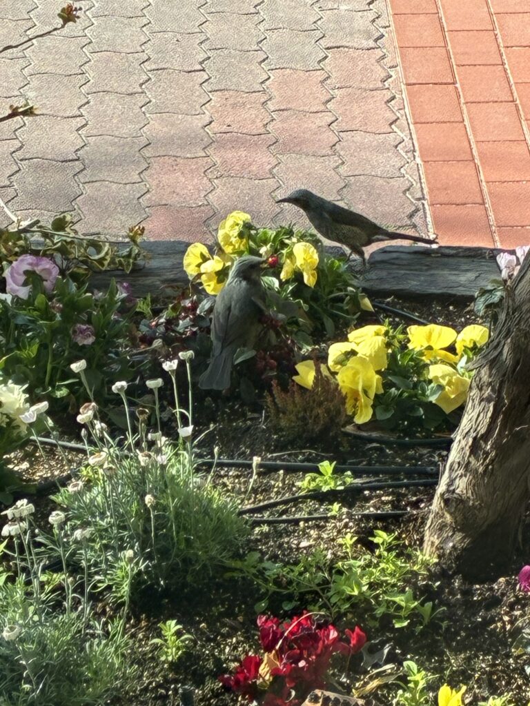 そんな中、会社の花壇では、鳥が実をついばむかわいらしい姿を見せてくれました📸
